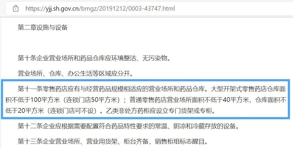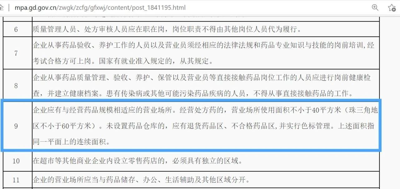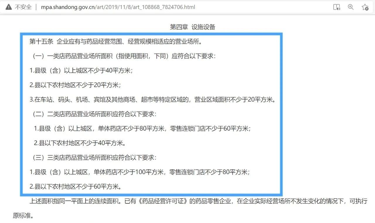 河北省药监局坚决取消药店营业面积限制设定这一项使得新开药店没了“红线”,但目前多数省市仍对药店面积有相应要求: