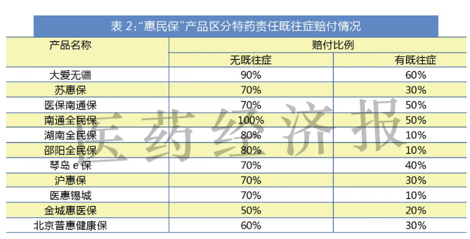 也有小部分产品对于特药保障的赔付不设既往症限制(即既往症患者与无既往症人群享受同等报销比例)。此类产品主要具有以下特点: