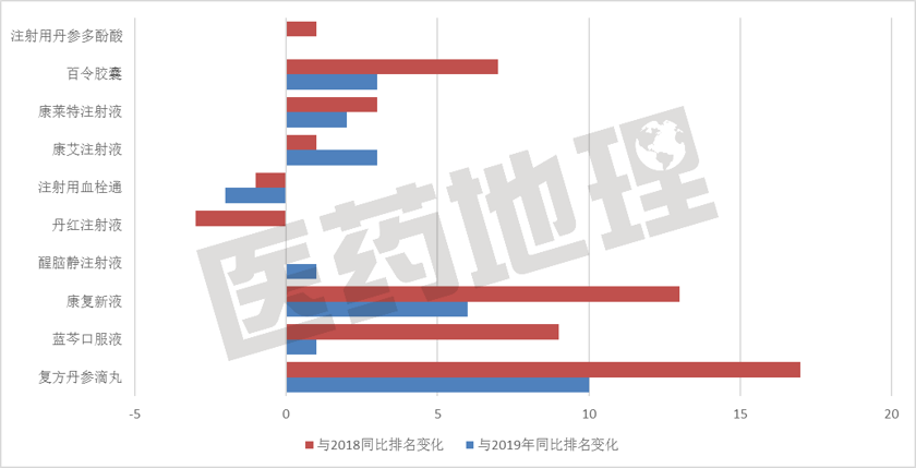 图4 中药市场TOP10产品排名变化(2020)