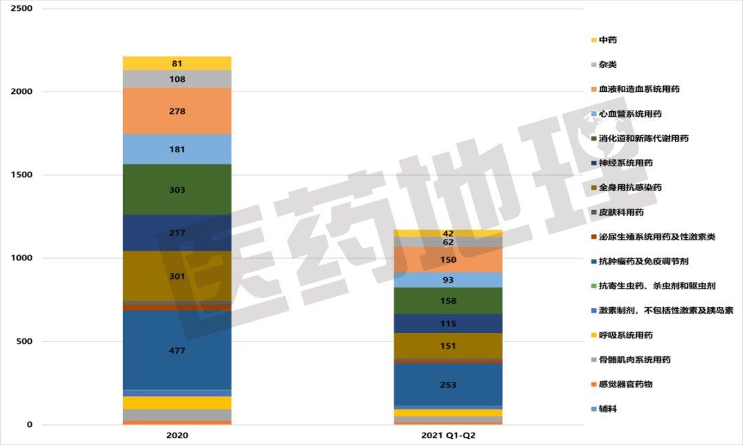 图2 2021 Q1-Q2与2020年各治疗大类销售额分析