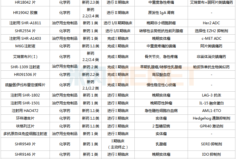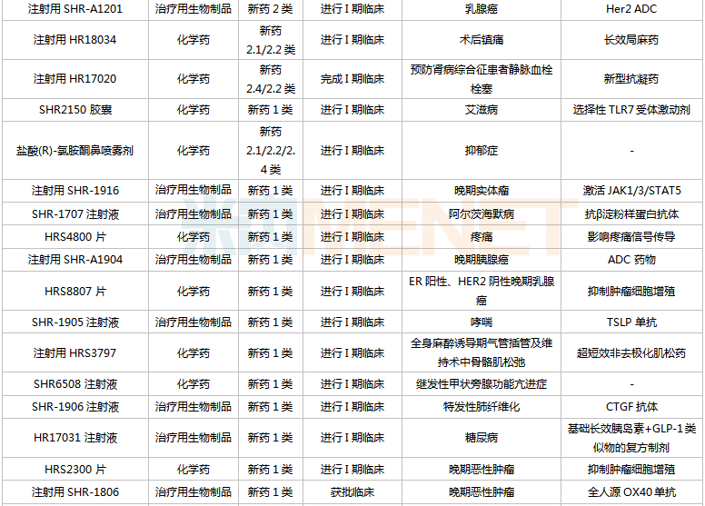 恒瑞医药新分类报产且暂无首仿获批的品种