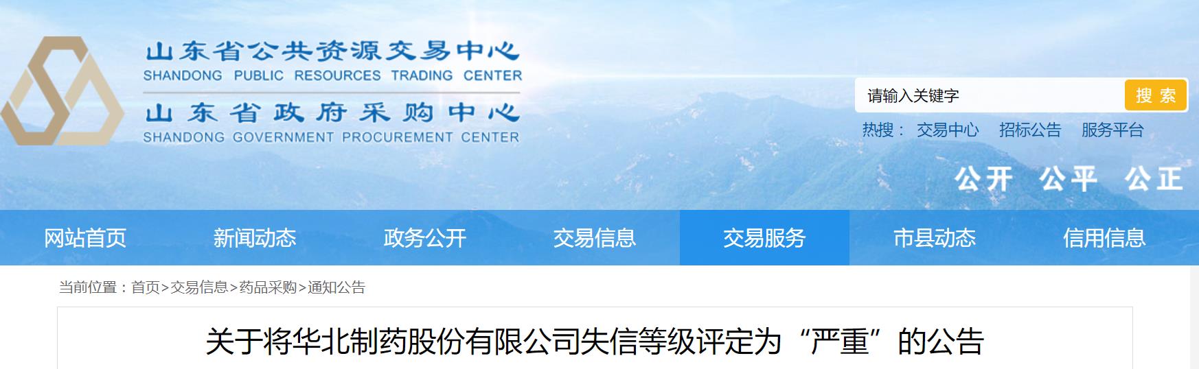 2021年9月17日,山东省公共资源交易中心发布关于将华北制药股份有限公司(以下简称“华北制药”)失信等级评定为“严重”的公告。山东省决定将华北制药失信等级评定为“严重”,中止华北制药布洛芬缓释胶囊3年挂网资格,并取消该企业自2021年8月11日至2022年5月10日参与山东省组织的药品集采活动的申报资格。