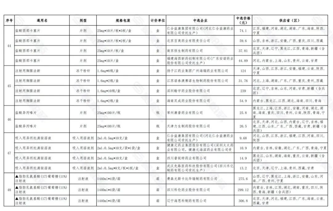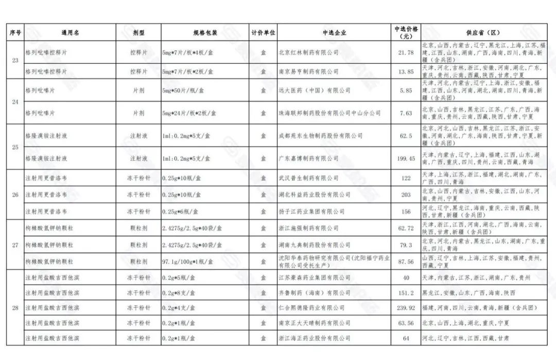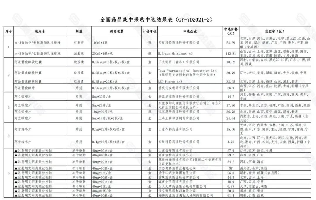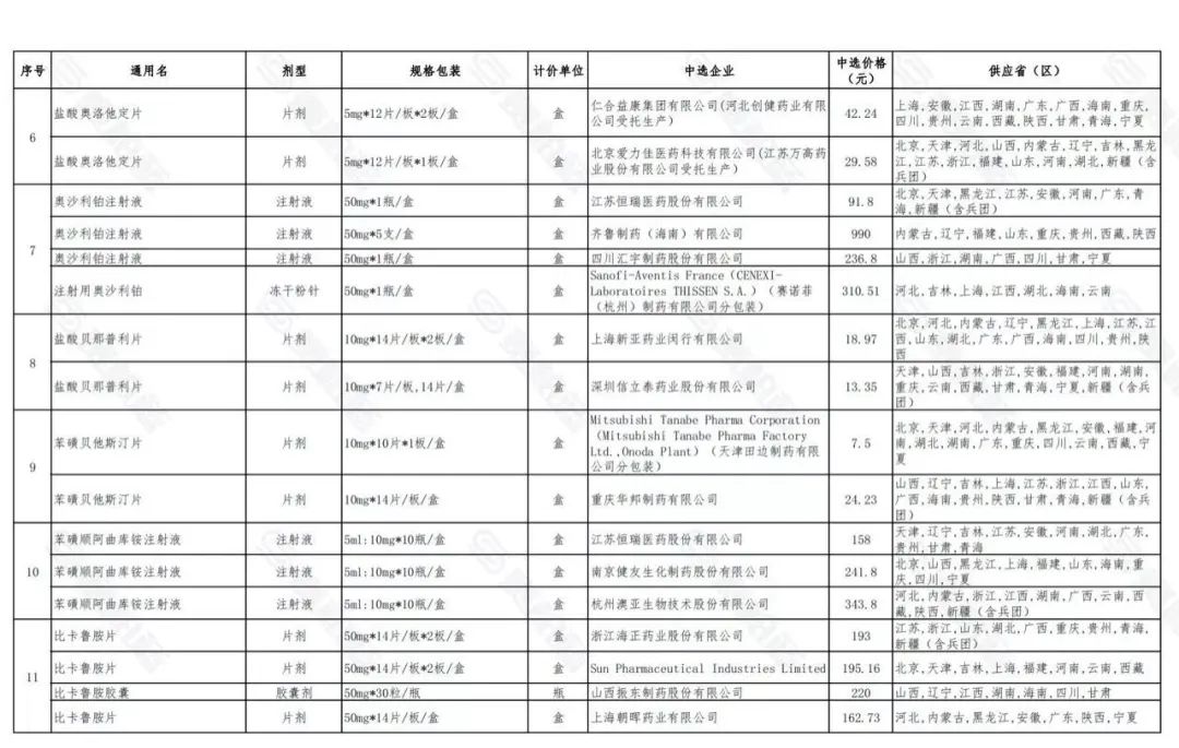 附:第五批国采中选结果