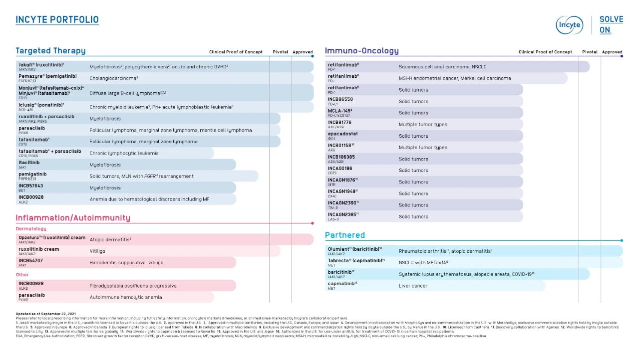 Olumian在多种适应证上的成功只是Incyte的实力一小部分。