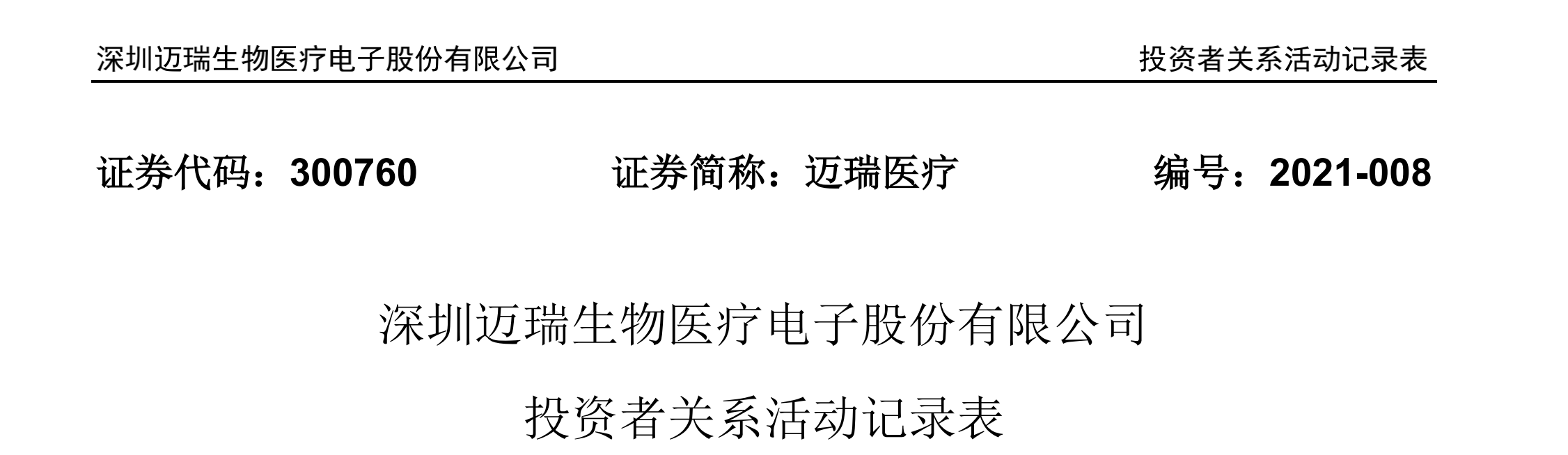 10月8日,迈瑞医疗发布《投资者关系活动记录表》,对近期投资者关于迈瑞的提问进行回应。