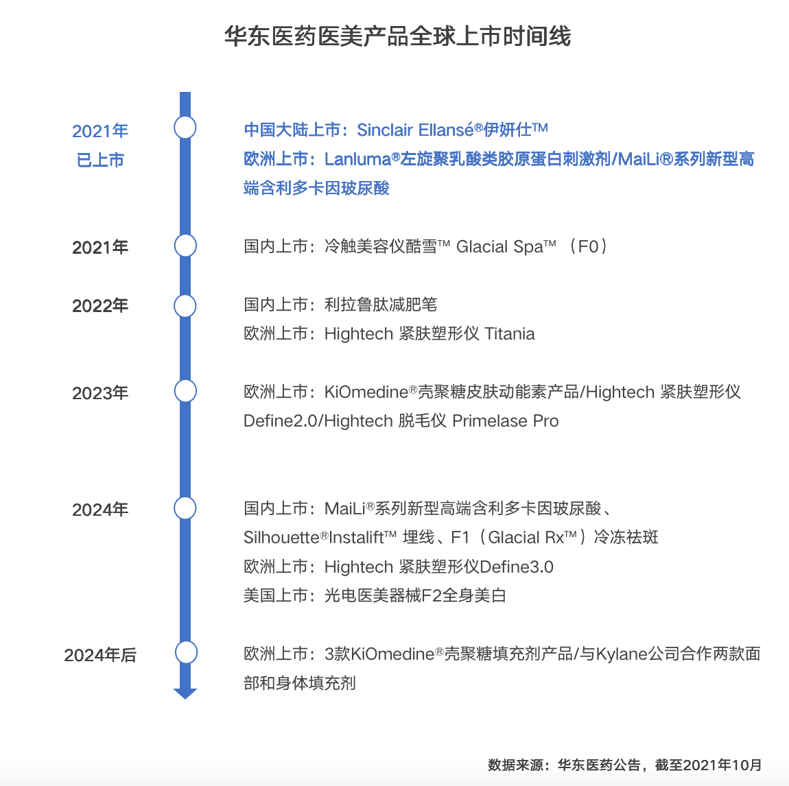 可见,在轻医美市场,华东医药“高、快、全”的布局特点十分鲜明。公司医美产品均着眼于高端消费市场,在三年内完成多笔国际交易,拥有“无创+微创”产品布局20余款,并且迅速实现全球范围内全产业链布局。公司中报显示2021年上半年,海外医美业务同比实现翻倍增长,有望在下半年维持目前经营趋势。