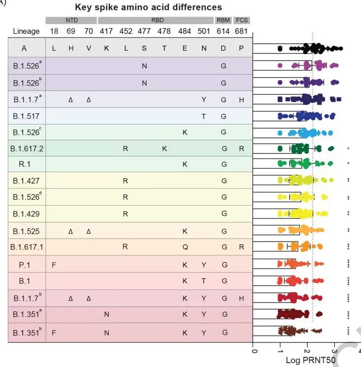 ▲不同变异新冠病毒的关键突变位点和接种者血清对病毒的中和活性变化(图片来源:参考资料[1])