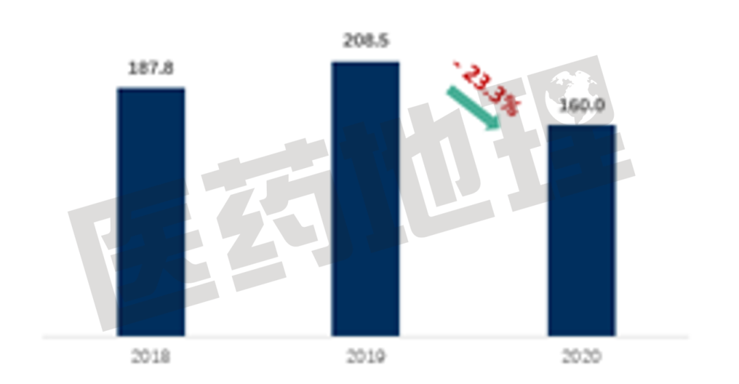 “集采”政策对药品终端市场有所影响。随着五轮带量采购的进行,仿制药品市场在降低药品价格方面取得了显著成效。药物大数据分析平台PharmaONE收集了1-3批集采品规整体市场销售额变化(图3),可以看出,带量采购政策实行以来,集采品规整体市场略有压缩,2019年由于带量采购政策持续推进,整体市场销售额下降了23.3%。主要原因是带量采购在之下药品价格下降,整体市场销售额降低,集采中选企业通过“以价换量”实现市场占有率的提升。