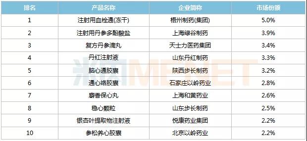 2020年中国公立医疗机构终端心脑血管中成药TOP10品牌
