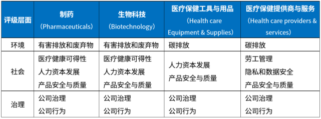 制药业的ESG评级包括有害排放与废弃物、医疗健康可得性、人力资本发展、产品质量与安全等。