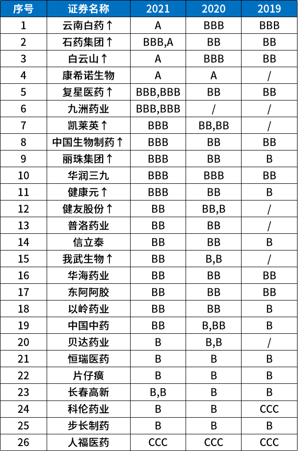 据MSCI发布的2021年ESG评级显示:2021年度,中国医药行业MSCI ESG评级整体呈现跃升态势,体现了中国医药行业对于ESG管理的关注度和管理水平整体提高。