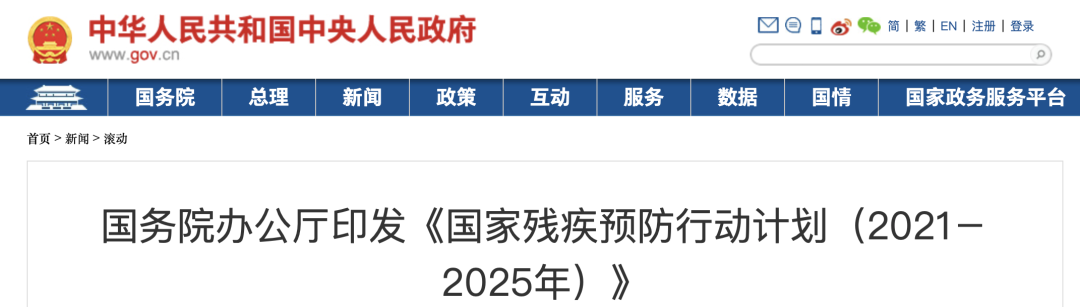 近日,国务院办公厅印发《国家残疾预防行动计划(2021-2025年)》(以下简称《行动计划》)。