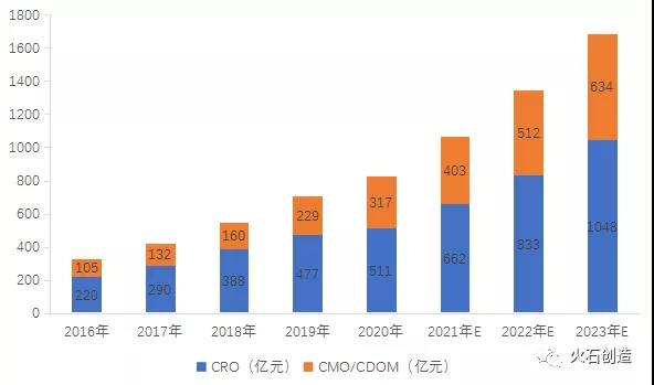 图1:2016-2023年中国医药研发和生产外包服务市场规模