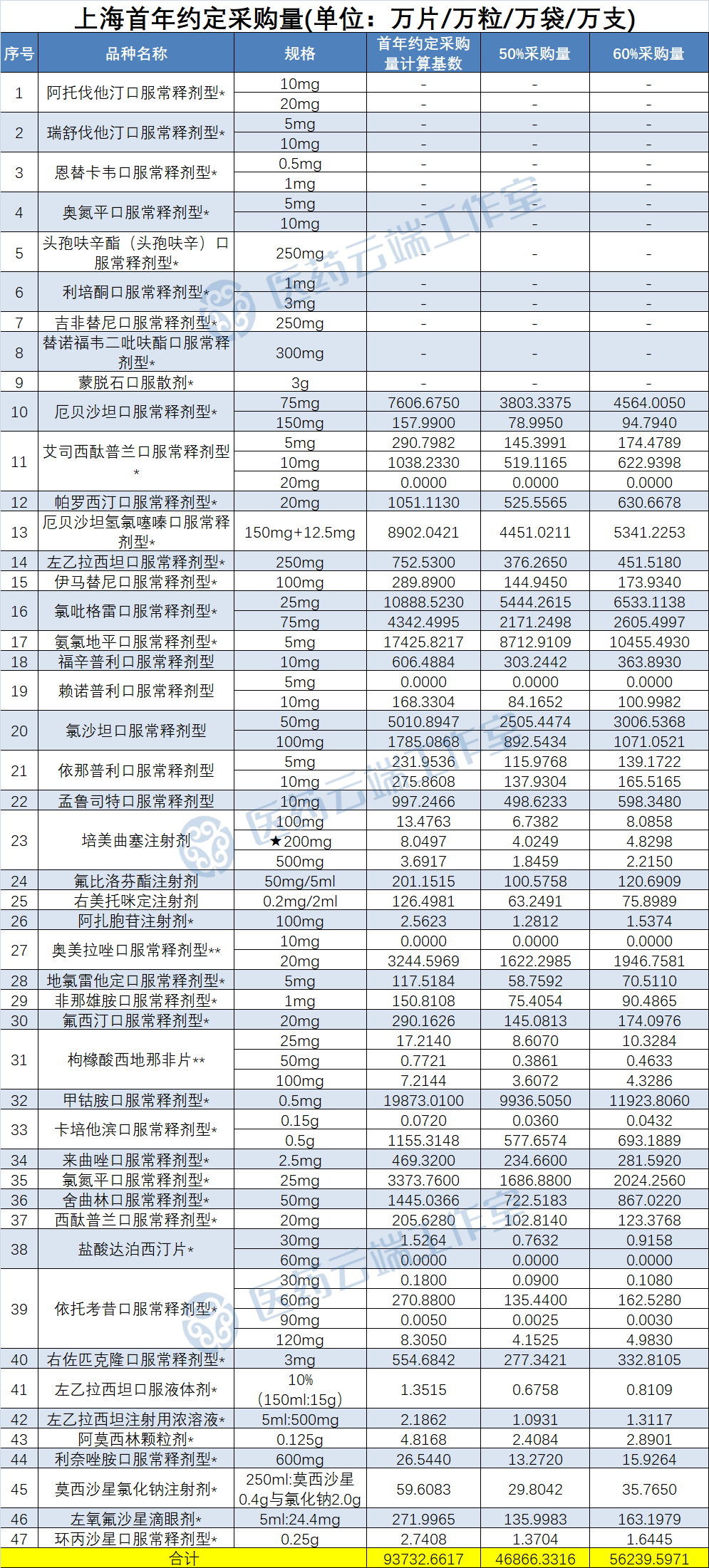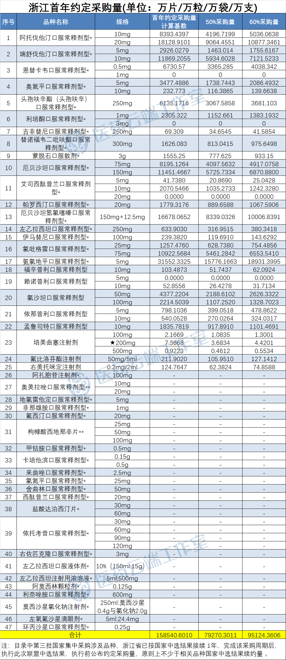 约定采购量:各品种首年约定采购量按以下规则确定:实际中选企业为该地国家集采同品种中选企业的,为首年约定采购量计算基数的60%;抗菌药物,以及实际中选企业非该地国家集采同品种中选企业的,为首年约定采购量计算基数的50%。各省采购量具体详见文末附表。