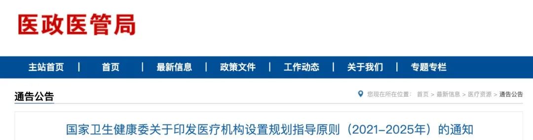 近日,国家卫健委发布《医疗机构设置规划指导原则 (2021-2025 年)》(以下简称《指导原则》)。