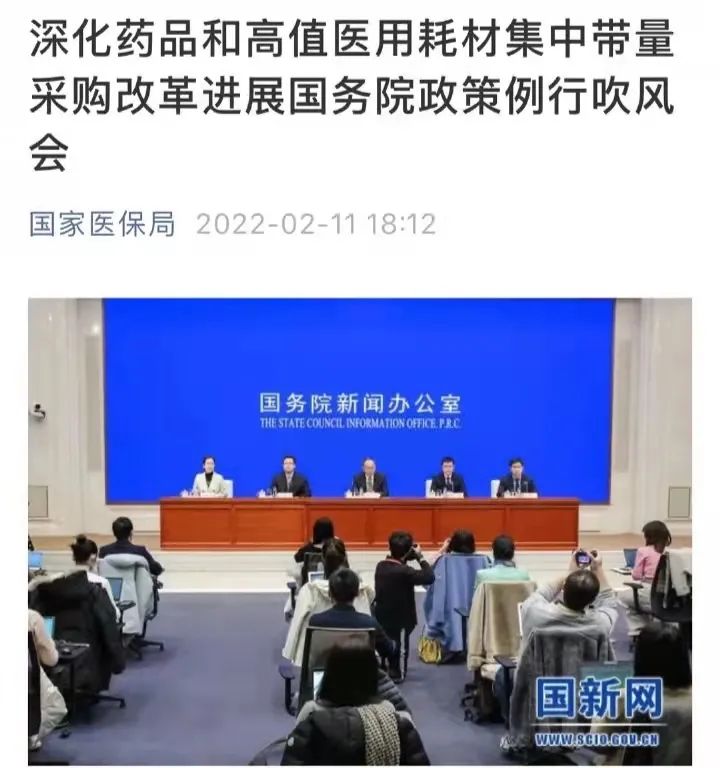 2 月 11 日上午,国务院政策例行吹风会上介绍了深化药品和高值医用耗材集中带量采购改革进展情况。