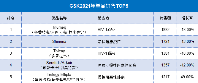 数据来源:GSK 2021年业绩报表