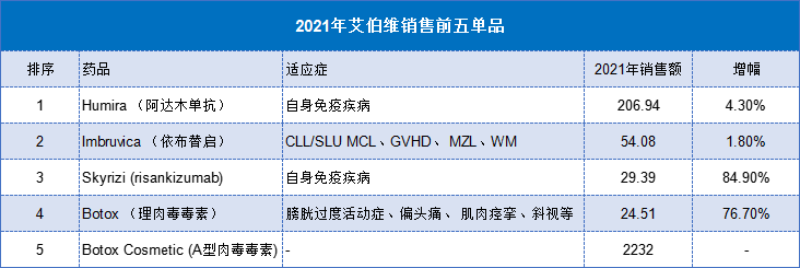数据来源:艾伯维2021年业绩报表