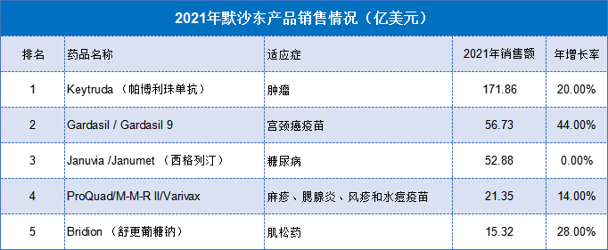 数据来源:默沙东2021年业绩报表