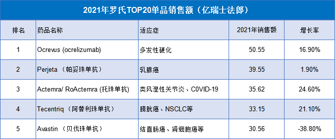 数据来源:罗氏2021年业绩报表