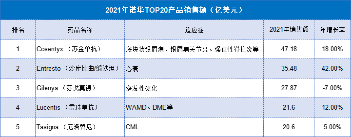 数据来源:诺华2021年业绩报表
