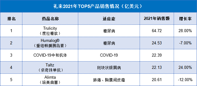 数据来源:礼来2021年业绩报表