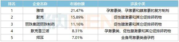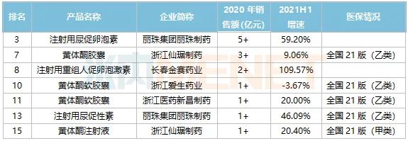 表1:2021H1性激素及生殖系统调节剂TOP5企业