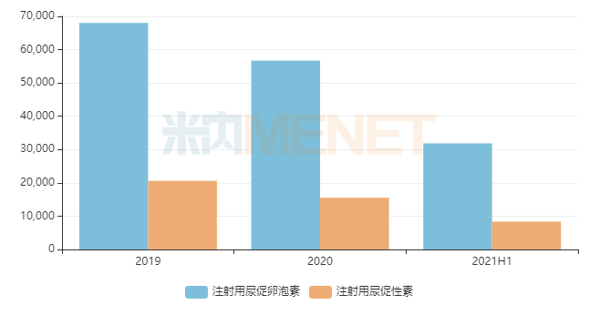 尿促卵泡激素是促性腺激素和其它促排卵药物TOP2品种,目前获得批文的企业有3家(含1家进口),但市场主要由丽珠集团掌控。2019年在中国公立医疗机构终端,丽珠集团取得了接近7亿元的销售额,2021上半年恢复高速增长,增长率超过59%。