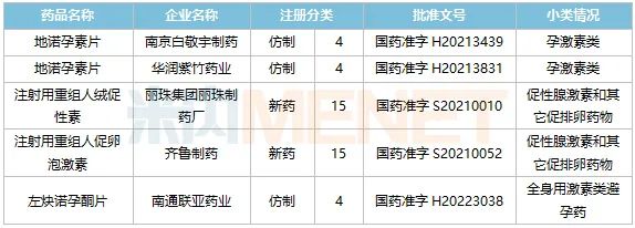 表3:2021年至今获批上市的国产性激素及生殖系统调节剂