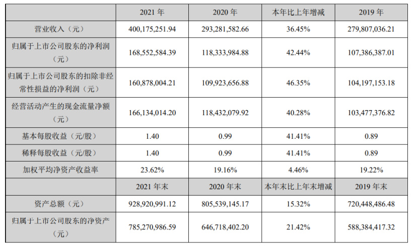 3月1日,正海生物公布2021年年报,报告期内,公司实现营收4亿元,同比增长36.45%,归母净利润为1.69亿元,同比增长42.44%。