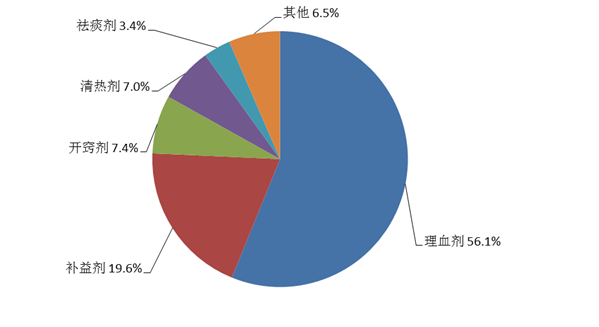 中药注射剂总体报告类别排名前5位的是理血剂、补益剂、开窍剂、清热剂、祛痰剂(图13)。