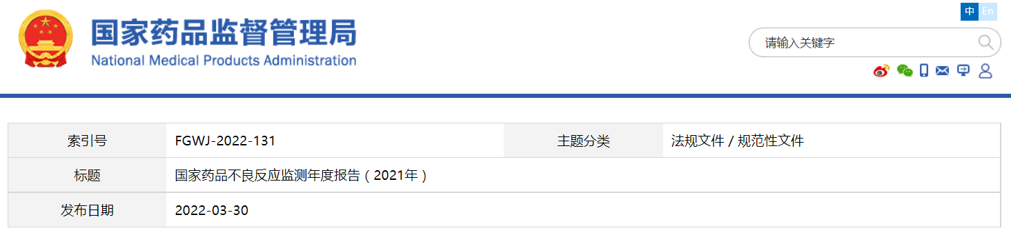 3月20日,国家药监局发布公告称,为全面反映2021年我国药品不良反应监测情况,提高安全用药水平,更好地保障公众用药安全,国家药品不良反应监测中心组织编撰《国家药品不良反应监测年度报告(2021年)》。