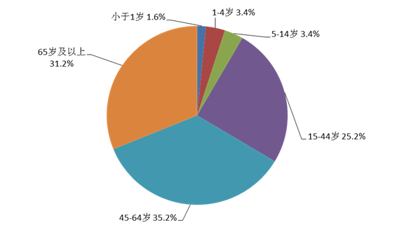 2021年药品不良反应/事件报告中,女性多于男性,男女性别比为0.86:1。从年龄分布看,14岁以下儿童占8.4%,65岁及以上老年患者占31.2%(图5)。
