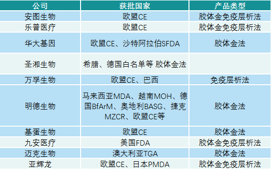 上市公司新冠抗原检测产品海外获批情况(数据截至2022年3月30日)