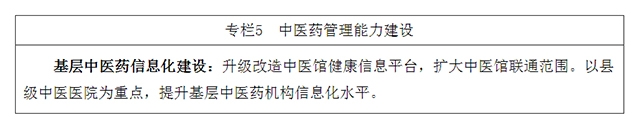 15.加快基层中医医疗服务信息化建设。落实《全国基层医疗卫生机构信息化建设标准与规范》和《全国医院信息化建设标准与规范》要求,提升基层医疗卫生机构中医药信息化水平,推进以电子病历和医院管理为重点的信息系统建设,支撑县级中医医院、基层中医馆、村卫生室实现信息共享和远程支持,丰富中医馆健康信息平台服务种类,扩大平台涵盖范围。鼓励三级中医医院牵头组建互联网医共体,为社区卫生服务中心中医馆中医药服务提供信息化支持。2025年,所有中医馆接入中医馆健康信息平台,实现县级中医医院牵头的医共体内信息互通和管理信息共享。