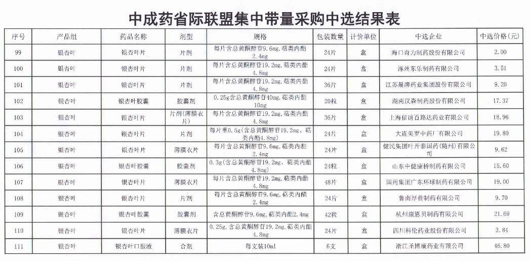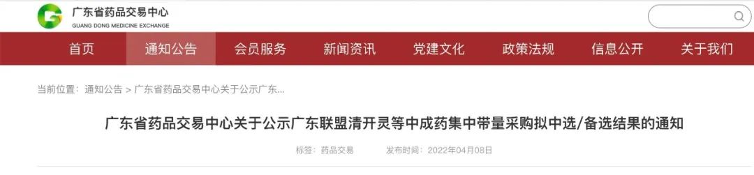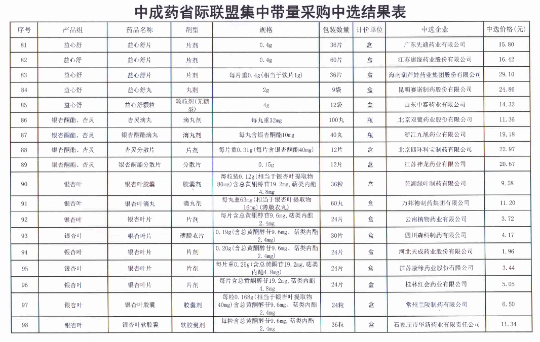 附:广东联盟清开灵等中成药集中带量采购拟中选/备选结果: