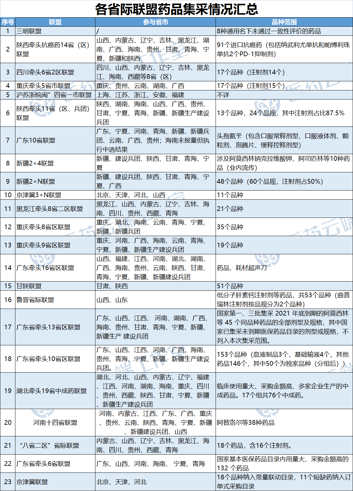 药品集采省际联盟达23个,耗材集采联盟达18个