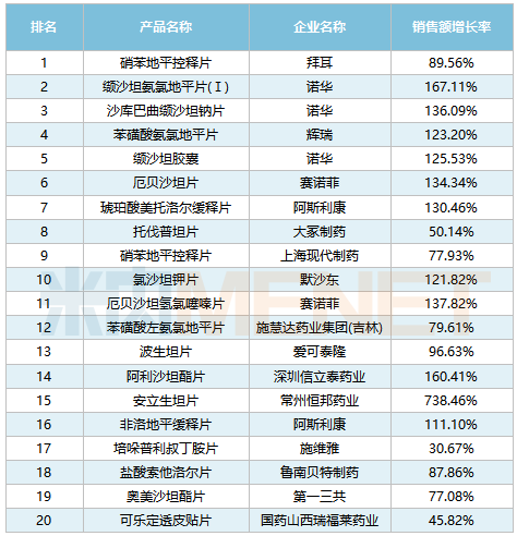 除了国药现代的硝苯地平控释片,施慧达的苯磺酸左氨氯地平片、信立泰的阿利沙坦酯片、鲁南贝特的盐酸索他洛尔片、国药瑞福莱的可乐定透皮贴片等国产品牌也纷纷上榜。其中,阿利沙坦酯片是唯一上榜的国产降压1类新药。