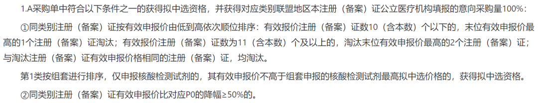 如拟中选产品在本次广东联盟新冠试剂耗材接续带量采购报名截止时间前,有全国各省集中采购最低中选价格、各省最低中选(挂网)价格低于本次拟中选价格,公示期内拟中选产品价格将按企业申报的或公示期内收到反馈的上述全国最低中选(挂网)价进行调平,不接受调平视为放弃拟中选资格。