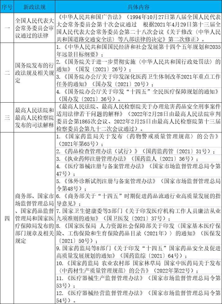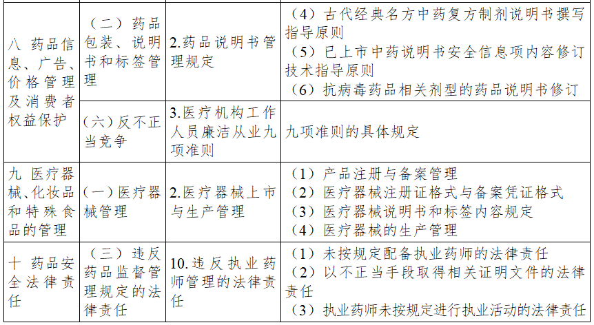 按照《通告》要求,《大纲》中药事管理与法规科目细目和要点的考试内容,涉及下述新政策法规的,按照新政策法规的规定掌握。