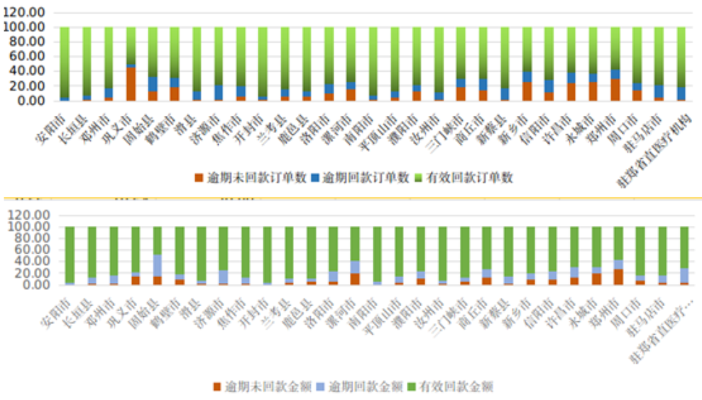 统计河南省各辖市和直管县回款情况,结果如下图所示:
