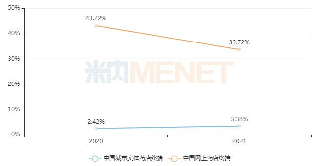 最近两年,马应龙的痔疮用药在中国网上药店终端增速惊人,其中拳头产品马应龙麝香痔疮膏2020-2021年的增速分别达58%、37%,而麝香痔疮栓2020-2021年的增速分别达18%、30%。