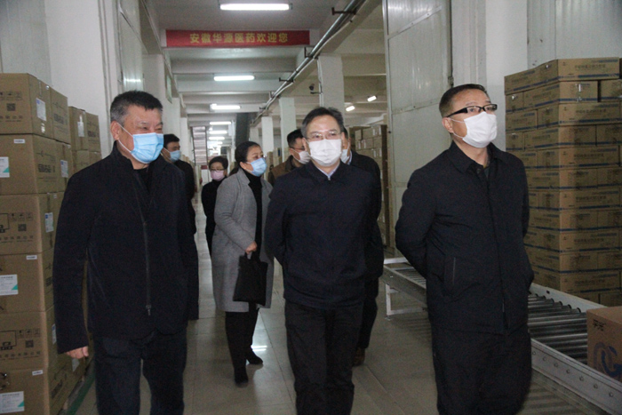3月18日,安徽省税务局大企业税收服务和管理局局长李长富,副局长杜少武等带领督导组在阜阳市税务局党组书记、局长陈平,太和县税务局局长刘芳的陪同下,来华源医药调研支持企业复工复产税费政策落实情况。华源医药集团党委书记、董事长王军,副董事长、副总经理张文涛热情接待。