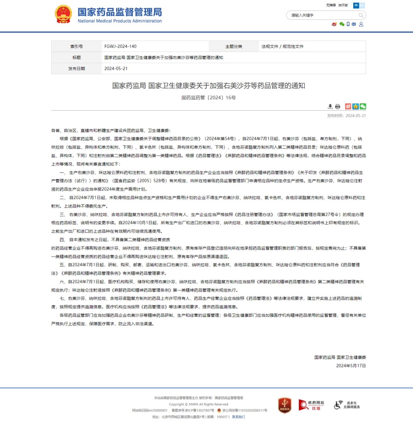 两部委关于加强右美沙芬等药品管理的通知