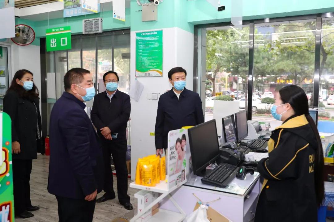 当前省内外疫情传播形势严峻复杂,为确保零售药店严格落实疫情防控相关工作要求,按规定销售“一退一止两抗”类药品,10月26日下午,省药监局党组书记、局长应宏锋一行对西安市高新区、莲湖区部分零售药店进行了明查暗访。省药监局党组成员、副局长齐惠丽,西安市市场监管局(药监分局)副局长、二级巡视员丁景玺以及省市区相关部门负责人陪同。