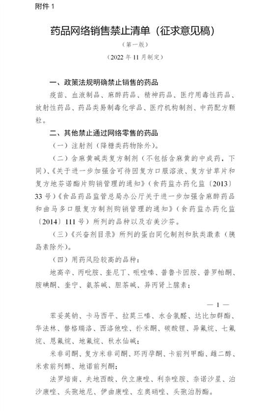 附件:1.药品网络销售禁止清单(征求意见稿)