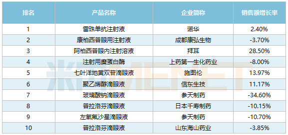 眼科用药TOP10!3大产品涨逾10%,4个国产品牌上榜
