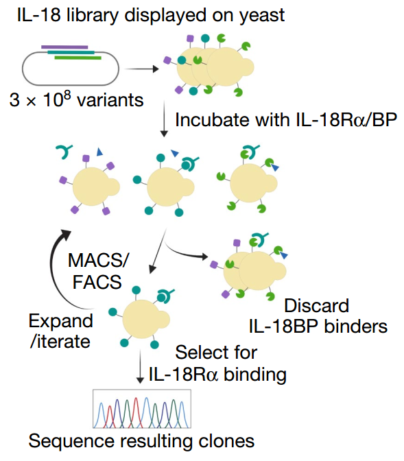 为了解决这个问题,研究人员使用了一个叫做定向进化的方法搜索了大约3亿种不同形式的IL-18突变体,以寻找只结合真正的IL-18受体而非IL-18BP的变体。在这个过程中,一个被称为DR-18的改良版本脱颖而出,它对IL-18受体具有高结合倾向,能够保持IL-18原有的信号激活功能而不被IL-18BP抑制。