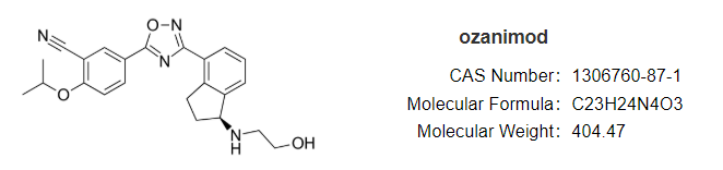 Ozanimod是鞘氨醇1-磷酸受体(S1PR)调节剂,对淋巴细胞表面的S1PR1和S1PR5均有较高的亲和力。当Ozanimod与受体的结合发生后,可以阻止淋巴细胞离开淋巴结进入中枢神经系统,起到抗炎作用。此外,siponimod也能进入中枢神经系统,直接与少突胶质细胞和星形胶质细胞上的S1PR结合,促进髓鞘再生和防止炎症。