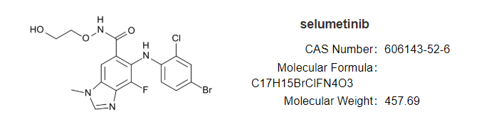 Selumetinib是一款MEK 1/2抑制剂,MEK是RAS/MAPK信号通路中的关键蛋白激酶,而NF1的发病正是由于NF1基因突变扰乱了RAS/MAPK信号通路所导致的肿瘤生长。该药曾获得FDA授予的孤儿药资格和突破性治疗法称号。目前,这款药物已经在中国获批临床。